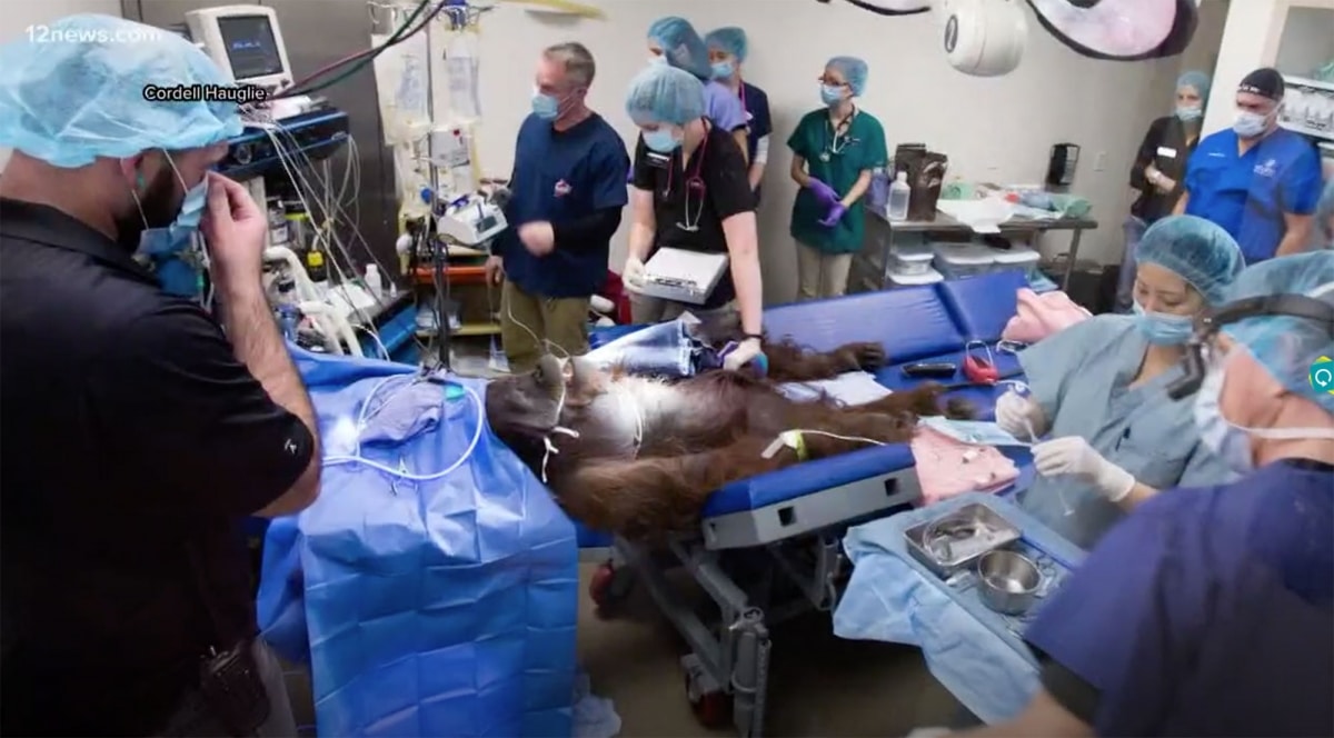 The patient, Daniel, is a 12-year-old Bornean orangutan at the Phoenix Zoo.